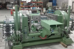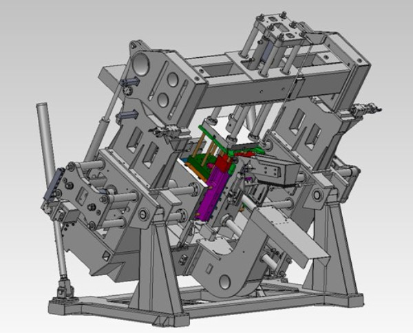MR 1200 UN completa di carro anteriore e posterioreCliente fonderia Gattelli - Lugo (RA)Macchina per colata in gravità di getti in alluminio con basculamento a 45°Macchina con quattro sponde di chiusuraMovimento inferiore inclinato 22°Quadro nuovo con PLC in profinetPredisposta per lavorare in isola automatica